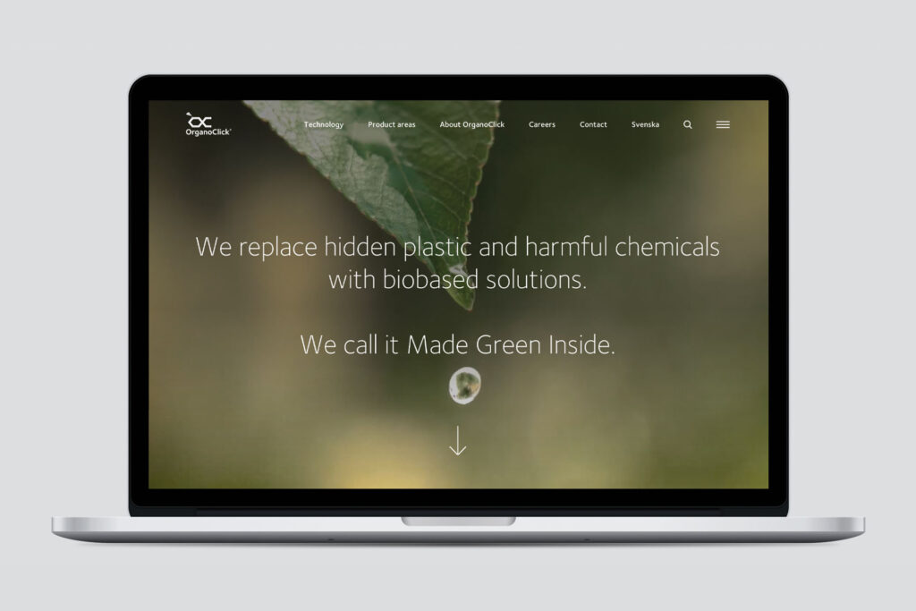 OrganoClicks olika innovationer och varumärken, och nyttan de gör, blir ofta komplicerat att förklara. För att hitta en sammanfattande utryck som var enklare att förstå tog jag fram varumärkeslöftet, ”Made Green Iniside”, som också är koncernens ingredient brand. Det finns med i allt från presentationer och webb till förpackningar, annonser och annat externt kommunikationsmaterial, ja till och med som teamsbakgrund.